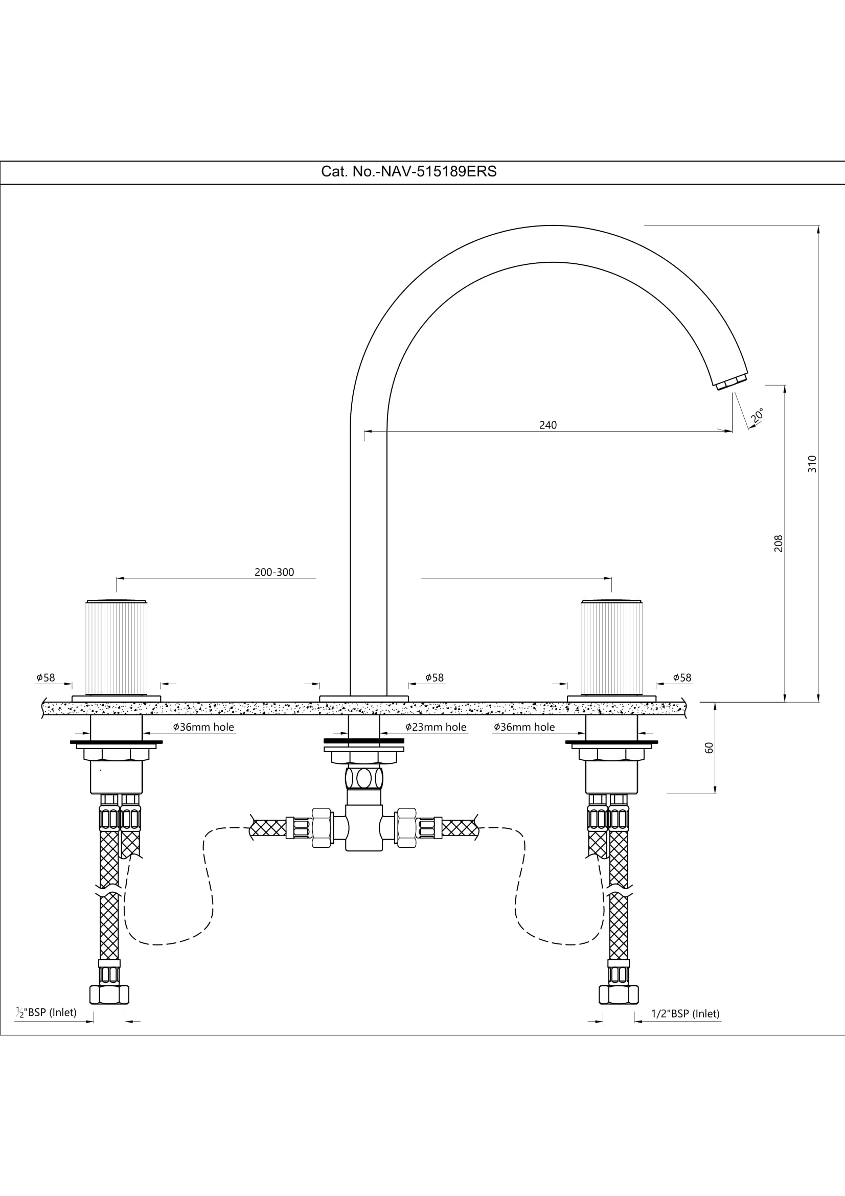 3-Hole Basin Mixer with Cache Aerator, Extended Round Spout, without Popup Waste