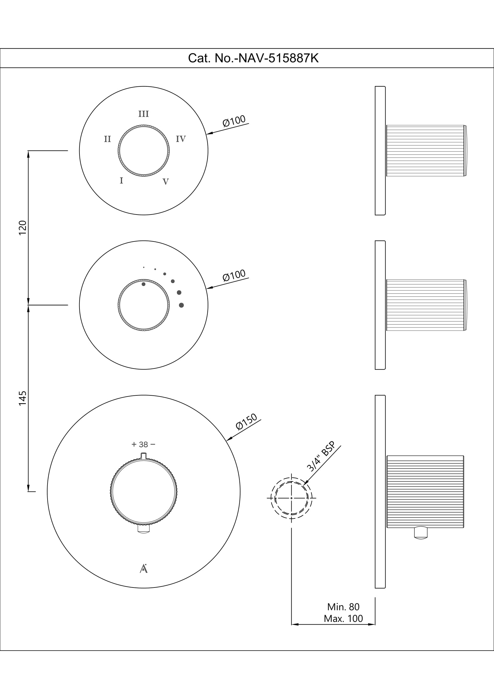 Exposed Part Kit of Thermostatic Shower Mixer with 5-way diverter, Round Flanges (Compatible In-wall Part ALA-509887 is sold separately)