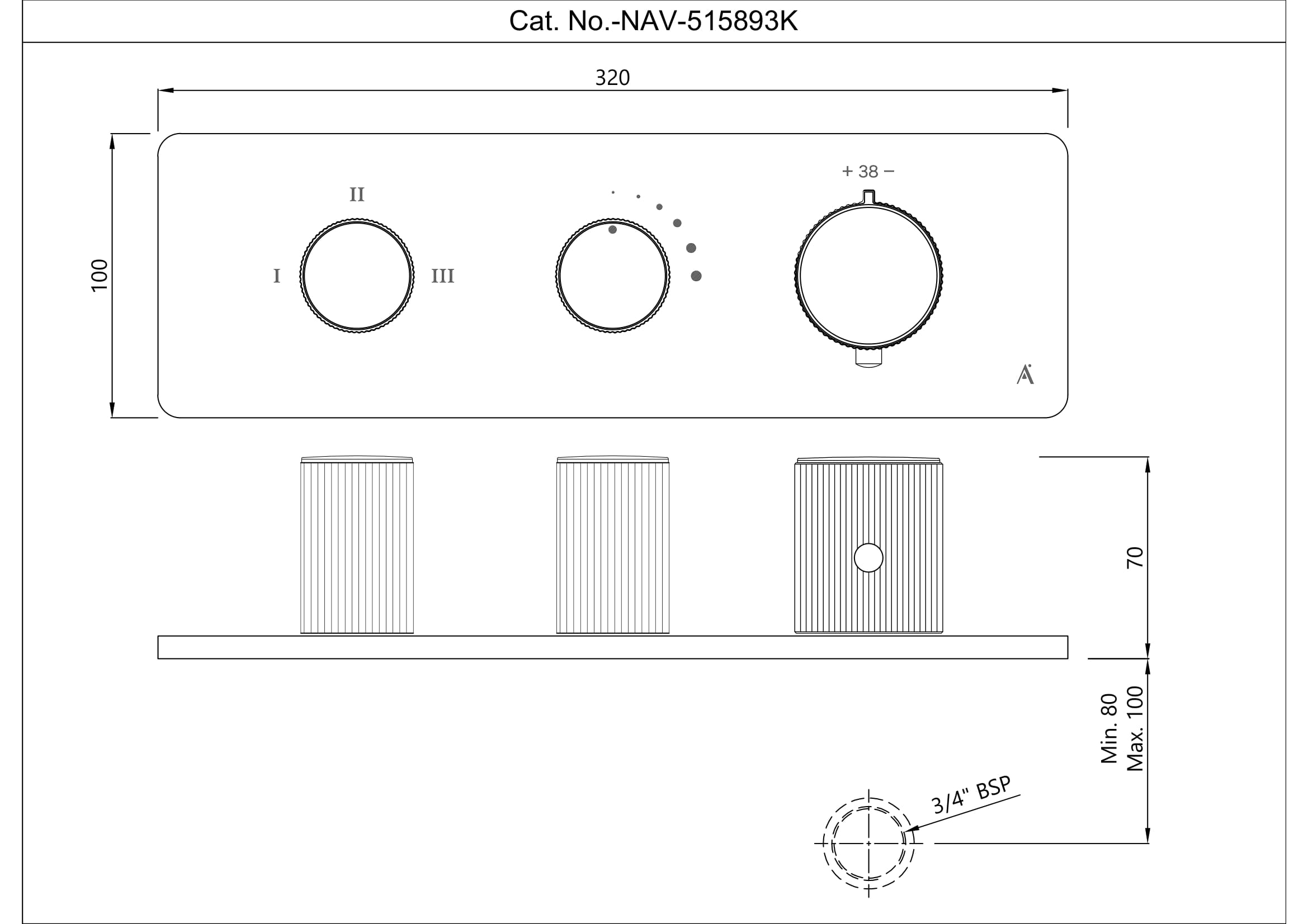 Exposed Part Kit of Thermostatic Shower Mixer with 3-way diverter, Rectangular Flange (Compatible In-wall Part ALA-509893 is sold separately)
