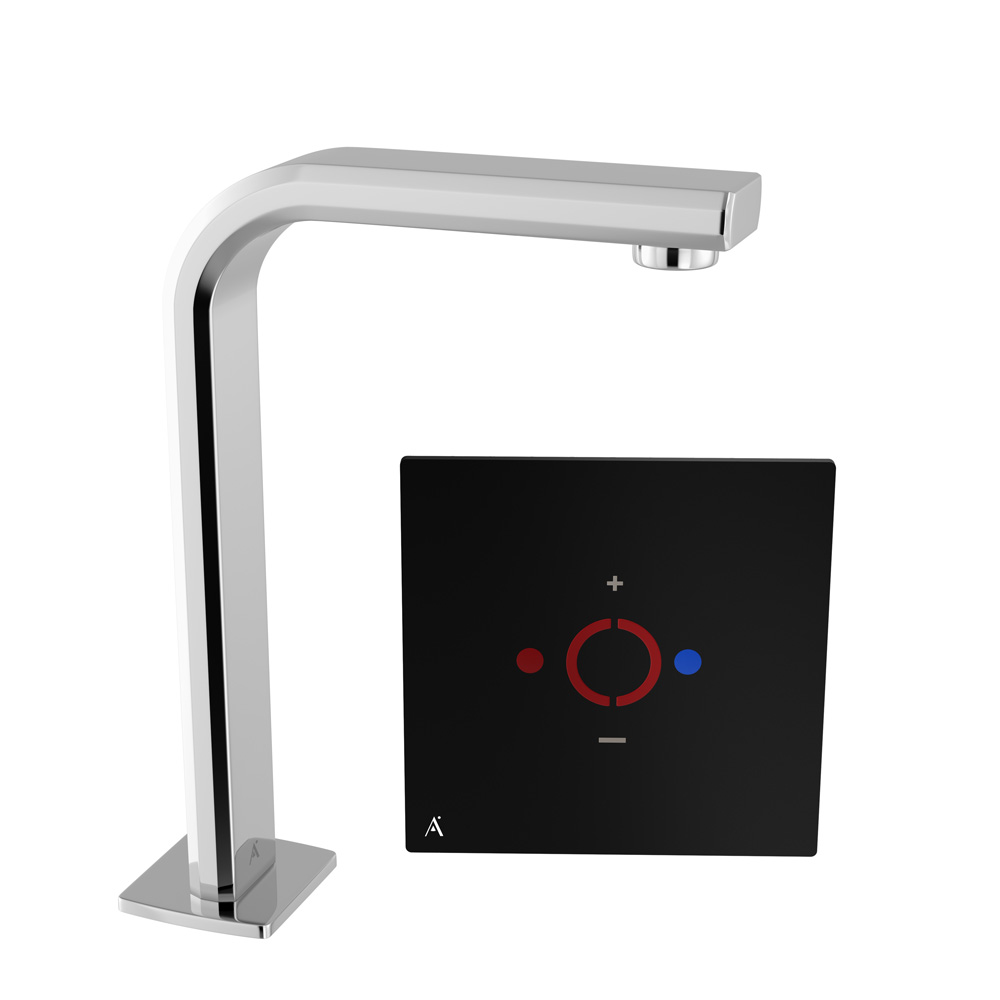 i-Tap High Neck Basin Mixer, Deck Mounted • CPU • Touchpad • Power Supply System with CPU Cable • Touchpad Cable - 1meters • Braided Hoses 18" - 03 Nos • NRV Set in-Built - 02 Nos • Filter - 02 Nos • Touchpad mounting box • Metallic clamp & screw